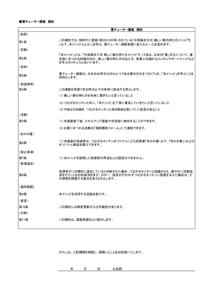 この度は、箸チューター講座に関心を寄せていただきありがとうございます。つながるキッチン代表中原麻衣子でございます。